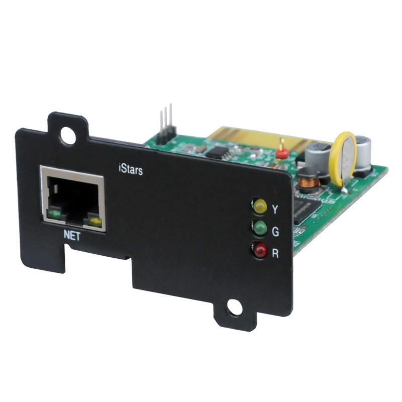 SNMP card provides UPS with real-time network monitoring and management, which is able to check real time dynamic data, manage remote control and network management. The product can monitor stand-alone UPS, and achieve centralized monitoring with relative PC software.
