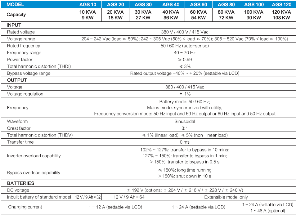 Aegis series UPS is the high density version of three phase on-line double-conversion UPS offers high levels of reliability and protection for IT systems, telecommunication equipment and mission critical systems like small data centers, large retail stores and regional offices. Its modularized design of subsystem, dual-mains input and standard maintenance bypass make maintenance easier on site, and high overall efficiency ensures low power consumption. Moreover for increased availability, scalable runtime is available with flexible built-in/external batteries. Meanwhile optional built-in isolation transformer makes the whole system more reliable.