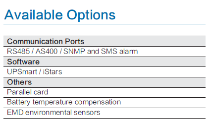 Highlights Compact design Dual input High reliability & availability Flexible battery configuration Advanced fast charging technology N+X redundancy parallel Multiple communication ports Powerful background software | Applications IDC – Internet Data Center IPC – Industrial process control ISP – Internet Service Provider Financial transaction / Clearing center Precision instruments, Automation system |